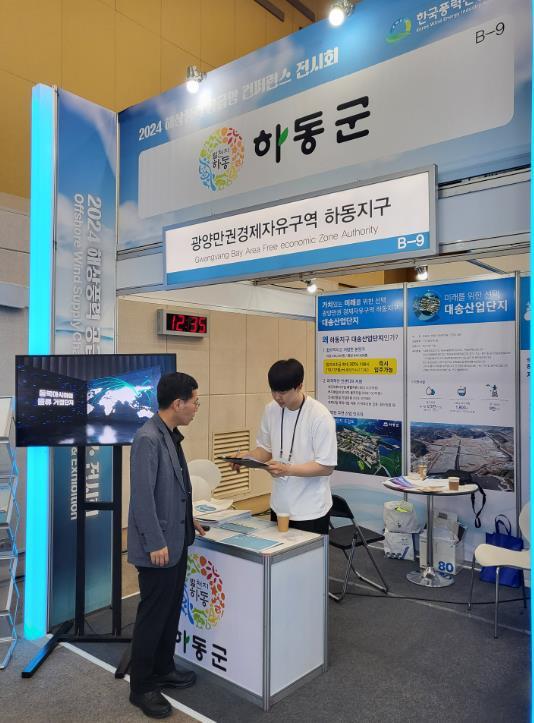 하동군은 지난 17일부터 18일 부산항국제전시컨벤션센터(BPEX)에서 개최된 ‘2024 해상풍력 공급망 컨퍼런스’에 참가해 광양만권 경제자유구역 하동지구(갈사·대송산업단지) 투자기업 발굴을 위한 다양한 투자유치 활동을 펼쳤다고 밝혔다.