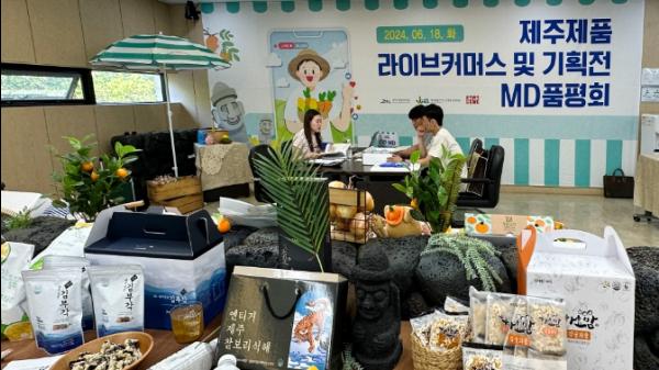 제주특별자치도와 공영홈쇼핑은 지난 18일 제주특별자치도경제통상진흥원 소회의실에서 공영홈쇼핑 채널 라이브커머스 방송 및 기획전 판매를 위한 제주 중소기업 제품 MD품평회를 개최했다.