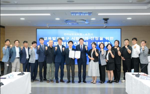 순천시는 지난 19일 순천교육지원청 대회의실에서 전라남도교육청과 함께 ‘교육발전특구 시범지역’지정을 위한 업무협약 및 사업설명회를 열었다.