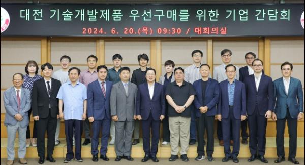 대전시는 20일 시청 대회의실에서 공공분야에 활용 가능한 관내 혁신기술기업의 기술개발제품 판로확대 지원을 위한 공공?우선구매 간담회를 개최했다.