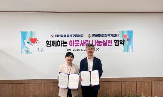 대전 중구 문화1동은 20일 대전국제통상고등학교와 함께하는 이웃사랑 나눔 실천을 위한 협약식을 진행했다고 밝혔다.