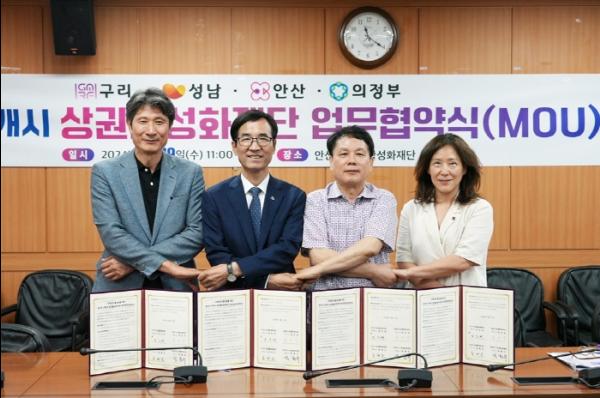 의정부시상권활성화재단을 비롯한 경기도 내 4개 시의 상권활성화재단(의정부시, 성남시, 구리시, 안산시)은 안산시 상권활성화재단에서 ‘지역상권 활성화 및 기관 상생발전’을 위한 업무협약(MOU)을 맺고, 이를 추진하기 위한 협의체로 ‘경기도 상권활성화기관협의회’를 6월 19일 구성했다.