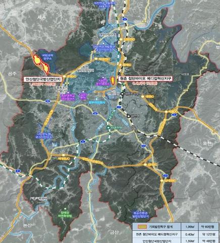 대전시는 올해 3월 초 고시된 정부의 선정 기준을 토대로 안산 첨단국방융합지구(48만 평)와 원촌 바이오메디컬혁신지구(12만 평)를‘대전형 기회발전특구’로 지정 신청했고, 2건 모두 선정되는 쾌거를 거뒀다. 다만, 안산 첨단국방융합지구는 그린벨트 해제 조건으로 선정됐다.