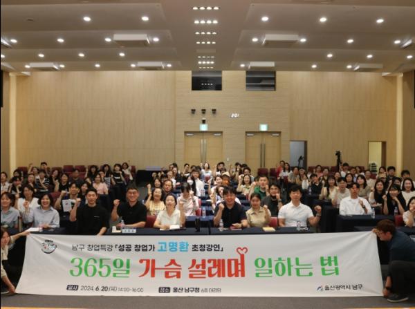 울산 남구는 20일 남구청 대강당에서 ‘성공창업가 고명환 초청강연’을 개최했다.