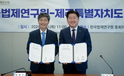 제주특별자치도와 한국법제연구원은 20일 오전 세종시 한국법제연구원에서 제주도의 법·제도 개선과 특별자치제도의 발전을 모색하기 위한 업무협약을 체결했다고 밝혔다.