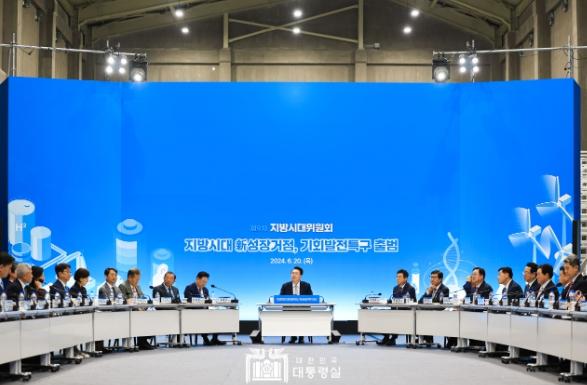 윤석열 대통령은 6월 20일 오후 포항 블루밸리산단 이차전지종합관리센터에서 개최된 ?제9차 지방시대위원회? 회의를 주재했다. 오늘 회의는 윤석열 정부의 국정 목표인 ‘대한민국 어디서나 살기 좋은 지방시대’ 구현의 핵심 과제인 기회발전특구를 최초로 지정하기 위해 개최됐다.