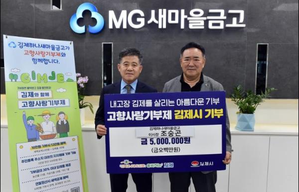 김제하나새마을금고 조숭곤 이사장은 6월 20일 지난해에 이어 올해에도 고향사랑기부금 500만원 기탁했다고 밝혔다.