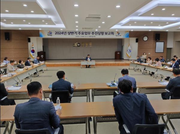 이번 보고회에서는 2024년도 업무계획 113건, 역점시책 147건 등 260건의 사업에 대하여 추진상황을 보고하고, 주요 역점사업에 대한 향후 계획과 군정 추진의 전반적인 방향성에 대해 논의했다.