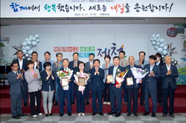 제천시가 지난 21일 제천시청 청풍호실에서 2024년 상반기 공직자 퇴임식을 개최했다.