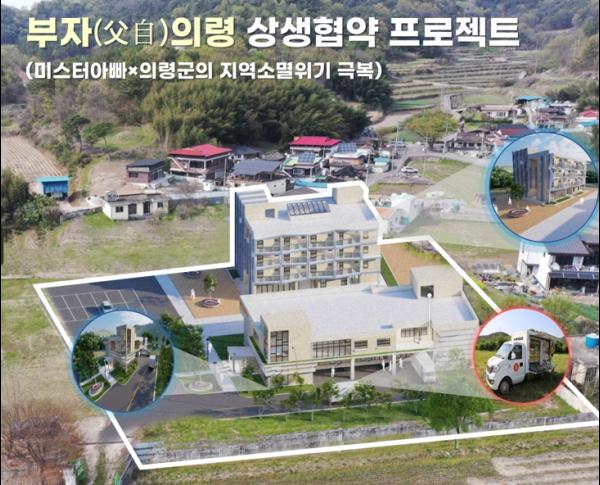 부자의령 상생협약 프로젝트는 총사업비 88억으로 농산물 유통 전문기업인 미스터아빠와 협업하여 정곡면 정남분교에 지역 소농인, 소상공인을 지원하는 농산물 소분물류 센터를 조성한다.