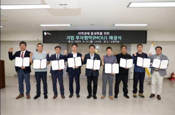 협약식에 참석한 ㈜해밀(대표이사 김성수), 세대에이치앤씨(대표 이병우), 신광산업(대표 박광희), 나노초음파(대표 윤덕주), ㈜밸브솔루션(대표이사 임미연), ㈜뉴텍(대표이사 성낙경), ㈜에이엠텍(대표이사 안재용), 정도(대표 문성우)의 8개 투자기업 대표 모두 협약서 내용을 성실히 이행해 지역 경제에 도움이 될 수 있도록 노력하겠다고 말했다.