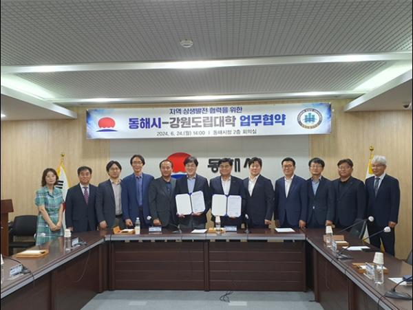 강원도립대학교와 동해시는 24일 동해시청에서 지역인재 양성 및 지역혁신과 지역의 상생 발전을 위해 업무협약을 체결했다.