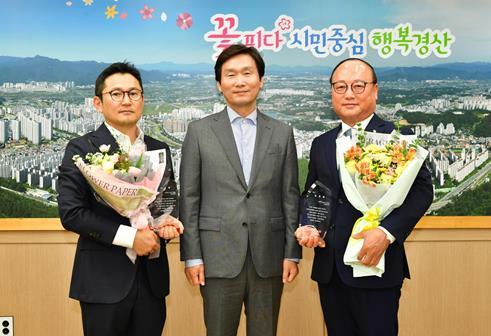 경산시는 24일 ‘경상북도 지방세 성실납세자’로 선정된 남산면 ㈜삼화기계(대표: 안태영)와 진량읍 ㈜일지테크(대표: 구준모)에 경상북도지사 표창패를 전달했다.