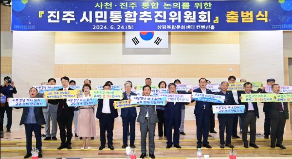 지난 17일, 진주지역 경제, 문화, 체육, 학계, 시민단체의 대표 40여명으로 구성한 민간 주도의 사천·진주 통합 논의를 위한『진주 시민통합추진위원회(이하 ‘추진위’』가 출범식을 가졌다.