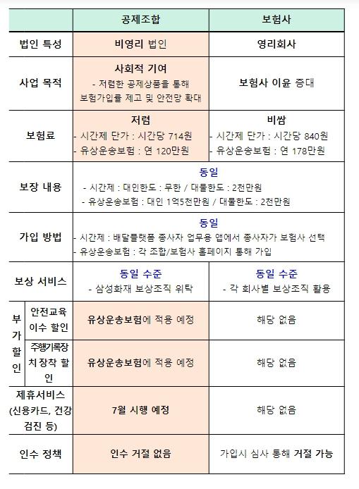 조합은 배달종사자의 업무 환경에 특화된 시간제 공제상품과 연/월 단위 공제상품을 시중 대비 16%~32% 저렴하게 제공한다. 종사자 수요가 큰 시간제 공제상품을 시작으로 순차 출시해 나갈 계획이다.