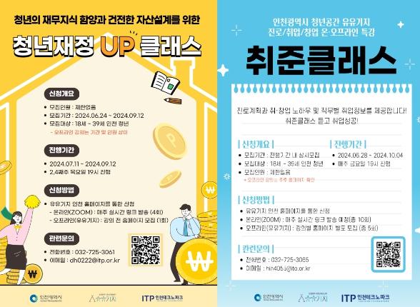 인천테크노파크가 운영하는 인천광역시 청년지원센터 ‘유유기지’에서 인천 청년을 대상으로 ‘취준클래스’ 및 ‘청년재정UP클래스’ 프로그램을 진행한다.