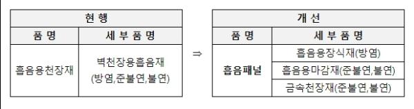 그동안 조달청은 방화성능이 상이한 실내장식용과 마감재를 ‘벽천장용흡음재’ 하나의 품명으로 묶어 계약함에 따라 수요기관이 제품의 방화성능을 확인하고 구매하는 데 많은 어려움을 겪어왔다.