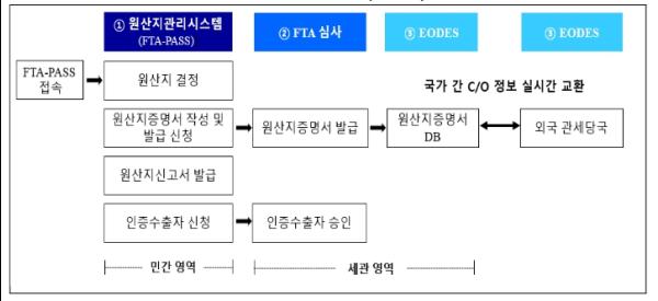 원스톱 원산지관리 시스템(OOMS)는 원산지 결정부터 원산지증명서 신청·발급 및 국가 간 원산지증명서 전자교환까지 자유무역협정(FTA) 활용을 위한 원산지관리 업무를 전산으로 일괄 처리할 수 있는 시스템이다.