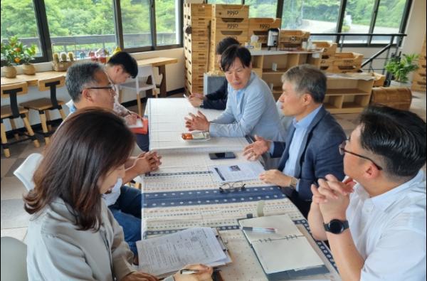 제주테크노파크 문용석 원장과 기업지원단 관계자들은 24일 오후 제주테크노파크 입주기업으로 시작해 조천읍에 양조장을 운영하는 ㈜제주양조장을 방문해 도내 주류제조산업 육성 방안을 모색했다.