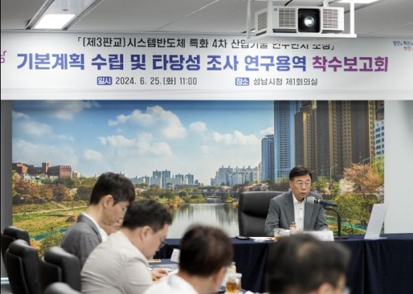 성남시가 25일 오전 11시 시청 제1회의실에서 4차산업 발전의 기반이 되는 제3판교 시스템반도체 특화 4차 산업기술 연구단지 조성 기본계획 수립 용역 착수보고회를 개최했다.
