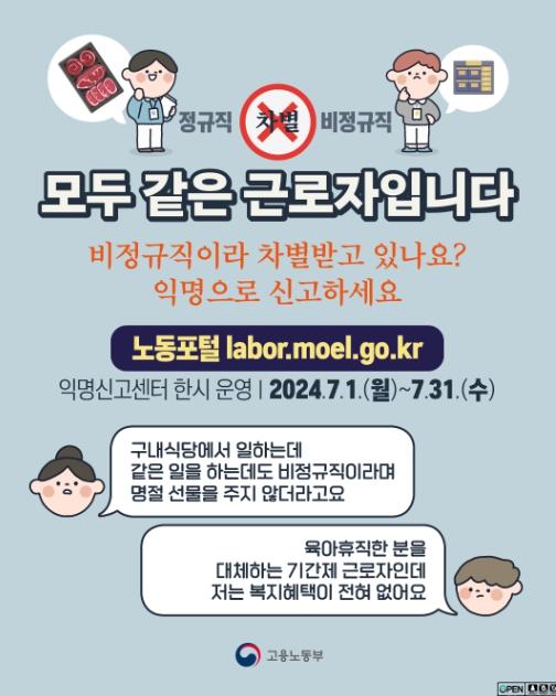 고용노동부는 ‘(온라인)익명신고센터(7월)’에서 제보도 받을 방침이다