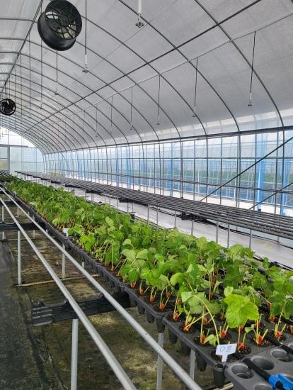 삽목 육묘는 모주에 발생하는 줄기(런너)에 자묘가 형성되면 즉시 분리해 한 번에 포트에 유인하는 방식으로, 묘소질을 균일하게 유지할 수 있고 작업 기간이 단축돼 인건비 등 노동력 절감 효과가 있다.