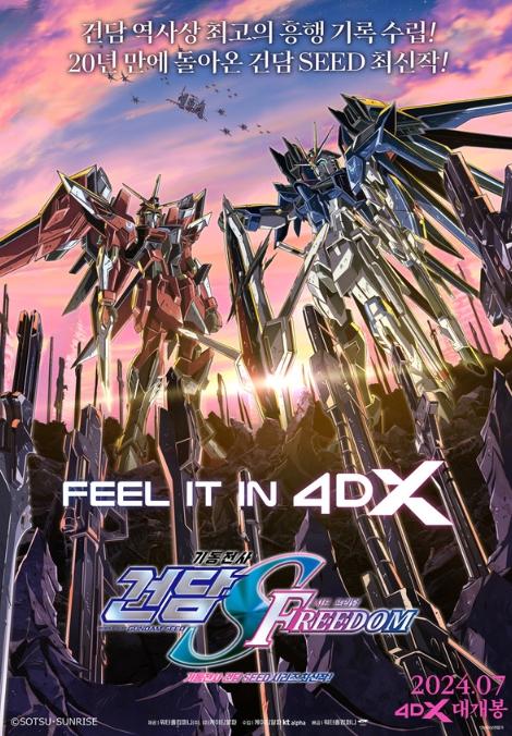 일본과 한국에서 건담 IP 사상 최고 극장 흥행작으로 등극한 극장판 '기동전사 건담 시드 프리덤'이 개봉 전 좌석판매율 83%라는 신기원을 기록했던 4DX 포맷의 정식 개봉을 확정했다.[제공: 워터홀컴퍼니, 케이티알파 | 수입: 케이티알파 | 배급: 워터홀컴퍼니ㅣ감독: 후쿠다 미츠오]