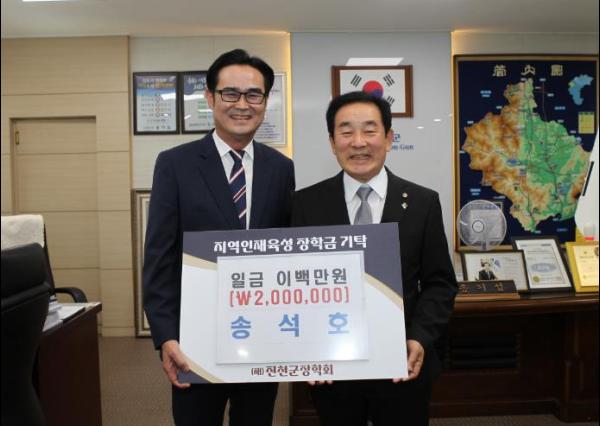 송석호 진천군 복지행정국장은 26일 (재)진천군장학회에 장학금 200만 원을 전달했다.