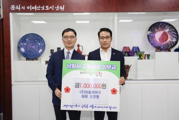 지난 26일 조진형 이룸바이오 대표가 남원시에 고향사랑기부금 100만원을 기탁했다.