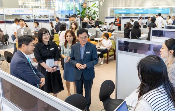 진 구청장은 박람회에 참여한 기업 부스와 행사장을 둘러보며 ▲채용 절차 ▲업체별 채용 현황 ▲구직자의 편의성 등을 세심히 살폈다.