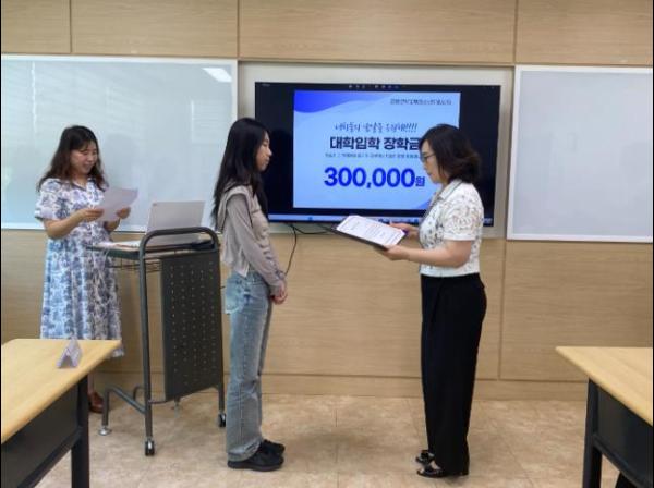 증평군학교밖청소년지원센터는 26일 2024년 대학을 진학한 학교 밖 청소년 3명에게 장학금을 전달했다고 밝혔다.