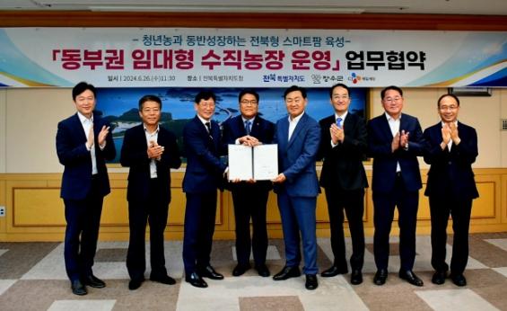 장수군은 26일 전북특별자치도청에서 성공적인 동부권 임대형 수직농장 사업을 위한 장수군-전북도-CJ제일제당 3자 업무 협약을 체결했다고 밝혔다.