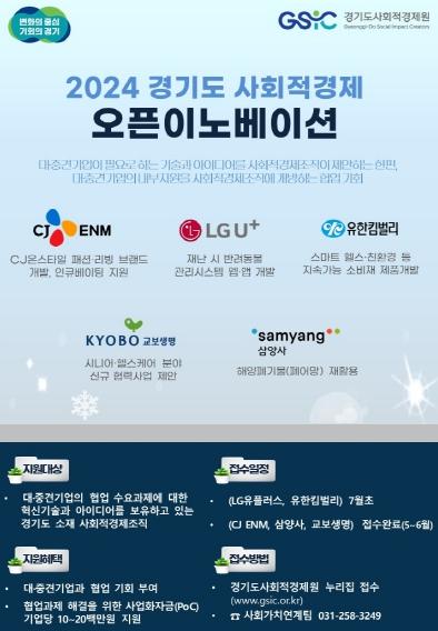 경기도와 경기도사회적경제원이 사회적경제조직의 규모있는 성장과 지속적인 생태계 확장을 위해 대·중견기업과 협력하는 개방형혁신(오픈이노베이션) 사업을 적극 추진한다.