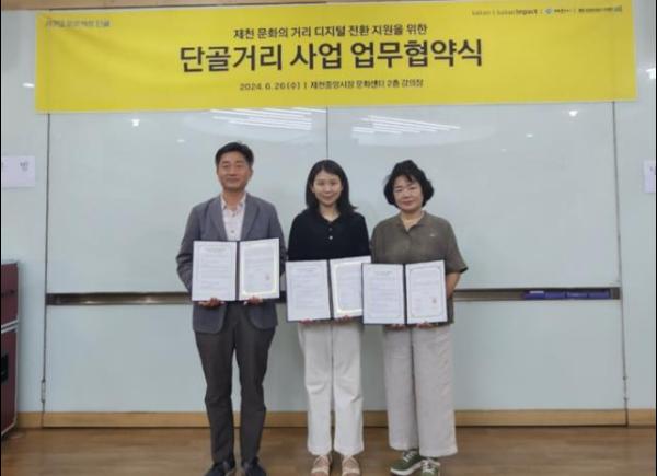 이에 지난 26일 제천시 상권르네상스사업단과 카카오, 문화의 거리 상점가는 제천 문화의 거리 디지털 전환 지원을 위한 ‘단골거리 사업 업무협약’을 체결하고 본격적인 디지털 전환사업에 돌입했다.