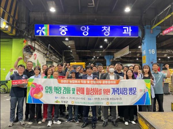 의성군은‘의성진자두’의 수도권 도매시장 첫 출하에 따라 지난 25일 의성중부농협자두공동출하회원, 의성조공법인, 농업분야 공무원 등 30여 명이 서울 가락농수산물도매시장을 방문해 자두 경매를 참관하고 유통 확대를 위한 홍보 및 현장 간담회를 진행했다.