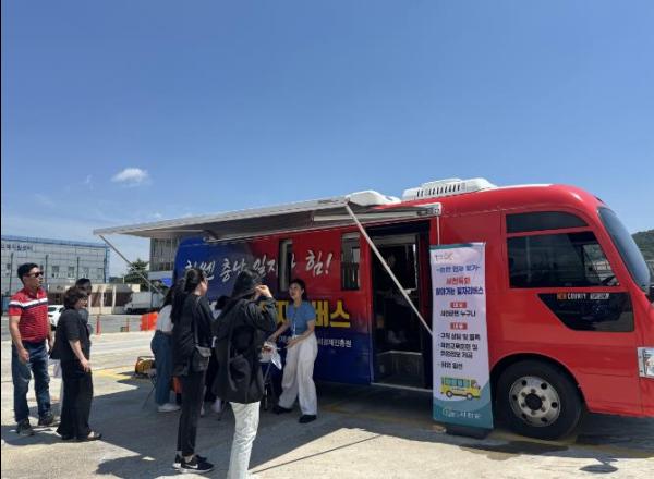 서천군이 지난 26일 서천특화시장에서 구직상담 및 취업정보 제공 등 군민들의 취업 지원을 위해 ‘찾아가는 일자리버스’를 운영했다.
