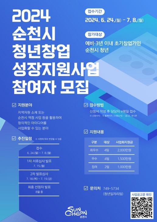 시 관계자는 “지역 내 유망 청년창업가들을 발굴, 육성하기 위한 이번 사업에 많은 청년들의 관심과 참여를 부탁드린다”며, “순천시가 창업하기 좋은 도시가 되기 위해 더욱 노력할 것”이라고 말했다.