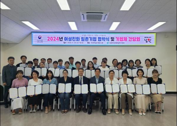 올해 여성친화 일촌기업으로는 지리산노인복지센터 외 35개 업체가 참여하여 협약을 체결하였으며, 여성이 일하기 좋은 기업환경 조성을 위해 기업체 간 운영 중인 복지서비스를 나누고, 상호 개선사항을 공유하는 등 간담회도 진행되었다.