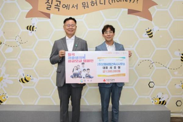 지난 26일 (주)보원씨엠건축사사무소가 칠곡군청을 찾아 저출생 극복을 위한 성금 150만원을 칠곡군에 기탁했다.