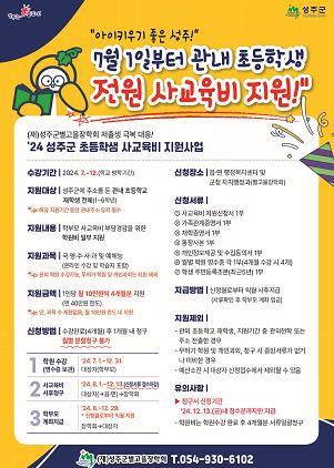 (재)성주군별고을장학회에서는 출생감소 및 학령아동 유출 등 범국가적 위기인 저출생 극복을 위해 "2024년 성주군 초등학생 사교육비 지원사업"을 오는 7월 1일부터 시작한다.