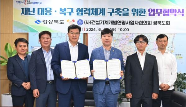 경상북도는 27일 경북도청에서 (사)건설기계개별연명사업자협의회 경북도회와 신속한 재난 대응?복구 협력체계 구축을 위한 업무협약을 체결했다.