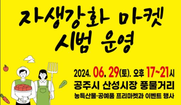 공주시는 오는 29일 산성시장 풍물거리에서 지역 소농인과 소상공인이 참여하는 프리마켓인 ‘자생강화마켓’을 시범 운영한다고 밝혔다.
