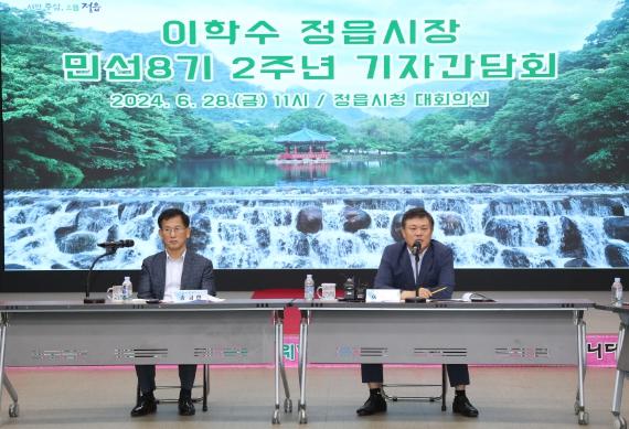 이학수 정읍시장은 28일 민선8기 2주년 기자간담회를 열고 지난 2년간 시정을 이끌어온 소회를 이같이 밝혔다.