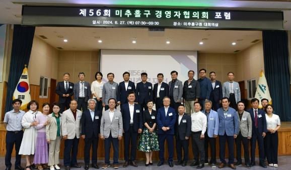 인천 미추홀구는 지난 27일 구청 대회의실에서 관내 중소기업 및 소상공인 대표 60여 명이 참석한 가운데 불필요한 규제를 타파하고 지역경제를 활성화하고자 ‘제56회 미추홀구경영자협의회 포럼’을 개최하고 ‘규제혁신 교육’을 실시했다.