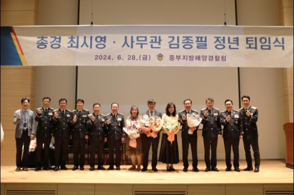 중부지방해양경찰청은 28일 오전 10시30분 대강당에서 최시영 총경과 김종필 사무관의 정년 퇴임식을 열었다고 밝혔다.