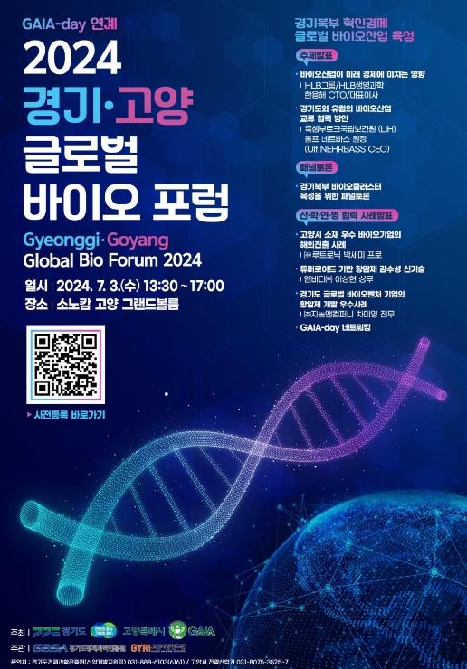 고양특례시는 오는 7월 3일 소노캄 고양에서 ‘경기북부 혁신경제 바이오산업 육성’이라는 주제로‘2024경기고양 글로벌 바이오 포럼(GBF2024)’를 개최한다고 밝혔다.