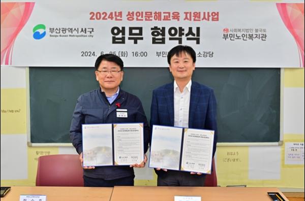 부산광역시 서구는 지난 25일 ‘2024년 성인문해교육 지원사업’의 원활한 사업 추진을 위해 사업 참여 기관 4개소와 업무 협약을 체결하고 교재 전달식을 가졌다고 밝혔다.