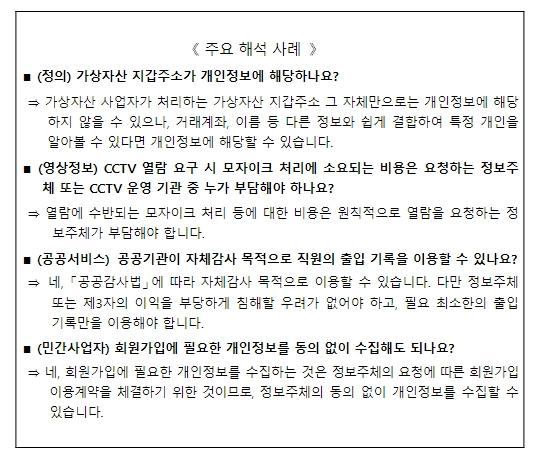 개인정보보호위원회는 기존 개인정보 보호법령 해석 사례집을 통합하여 국민들이 알기 쉽게 정리한 '개인정보 보호법 해석 사례집'을 공개했다.