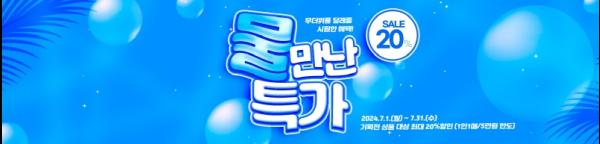 경기도와 경기도주식회사가 운영하는 ‘착착착’ 온라인 쇼핑몰(chack3.com)에서 7월 1일부터 31일까지 한 달간 7월 한정 이벤트 ‘물 만난 특가’ 기획전을 진행한다고 30일 밝혔다.