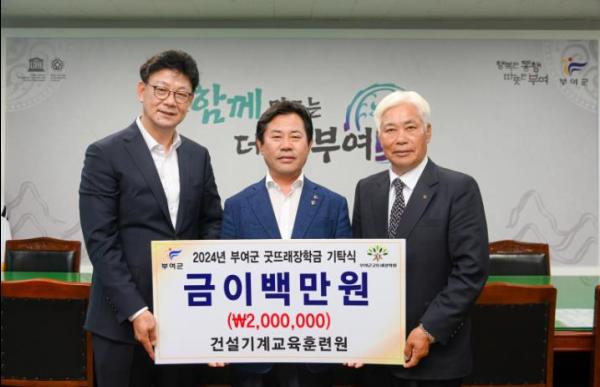 건설기계교육원은 지난달 27일 부여군에 ‘굿뜨래장학금’으로 200만 원을 기탁했다.